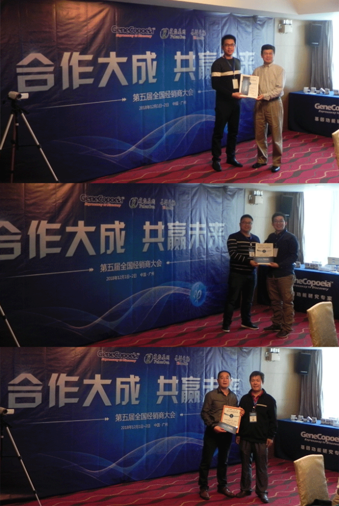 本次会议广州天骏生物科技有限公司、成都耶达科技有限公司、亚太恒信生物科技(北京)有限公司分别荣获“最佳销售经销商奖”“进步先锋奖”“忠诚合作伙伴奖”。