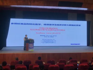 28日开幕式后,杨淑伟博士在会上以《参照标准品和转化医学、精准医学及临床诊断大数据的质量》为题展开关于科研和诊断用的参考标准品的应用及重要性的演讲。