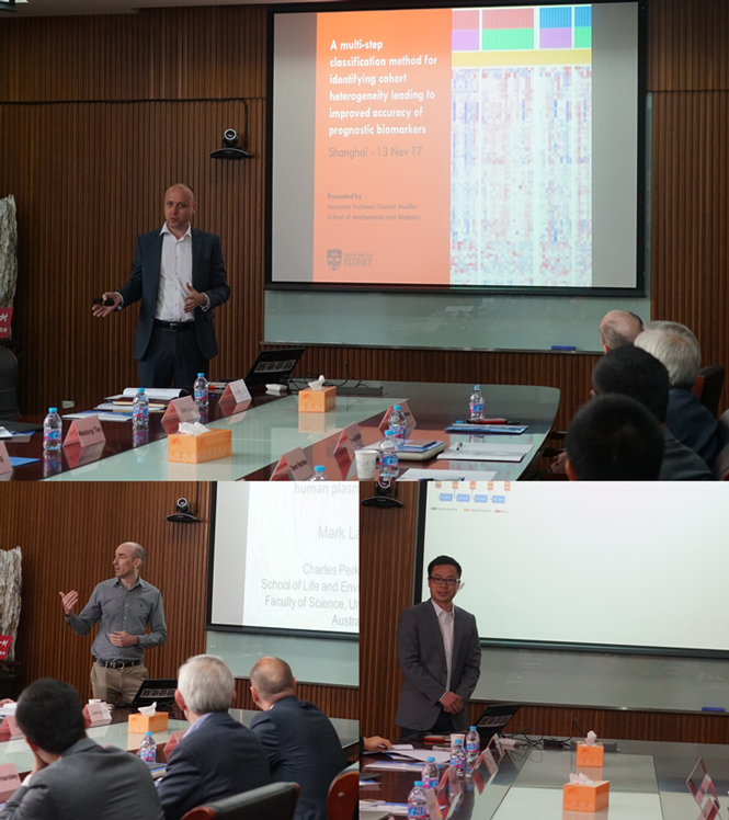 Hambley院长在讨论会上致辞并详细介绍了悉尼大学理学院,同时还表达了悉尼大学将继续与复旦大学携手致力于精准医疗等相关领域的研究意愿。悉尼大学其他专家学者就分子生物学领域研究的新方法及新发现进行深入的学术分享交流。