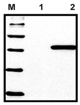 Figure 1. 6XHis western blot analysis using 293 cells transfected with His-tagged vector (lane 2) and untransfected control (lane 1).