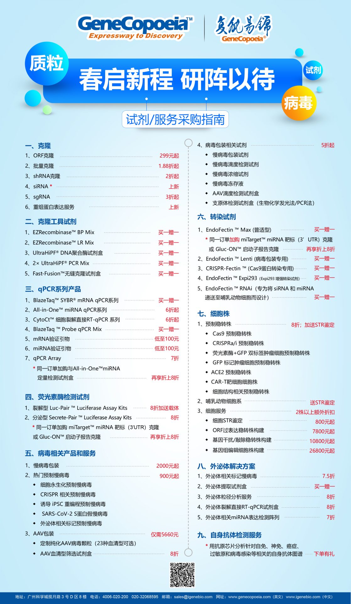 服务类:载体构建、慢病毒包装、AAV包装、细胞构建、自身抗体检测和重组蛋白表达等服务;
