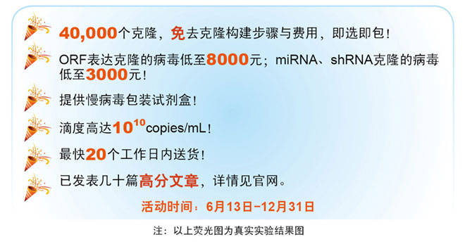 慢病毒包装,低至3000元,克隆免费